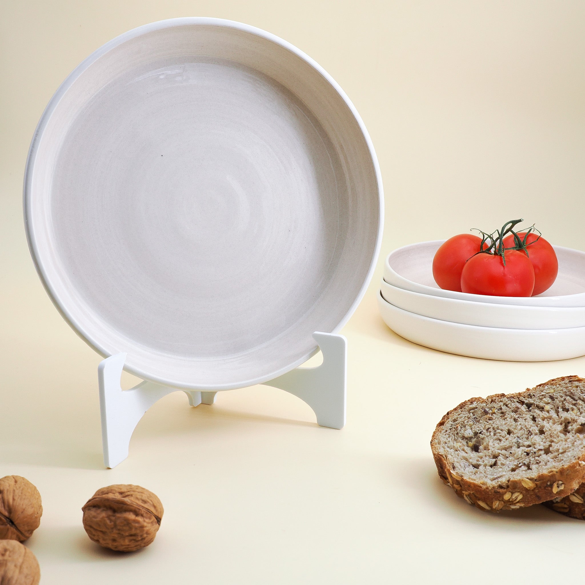 Assiettes creuses ou petites assiettes pour l'entrée, grandes assiettes plates pour le met principal, puis petites assiettes à dessert pour terminer sur une note de douceur : un service d'assiettes compte de nombreuses pièces pour chaque moment du repas. Assiette en grès ou assiette en faïence, unie ou colorée, Les Belles Terres ont sélectionné des services à utiliser au quotidien, dont toutes les pièces passent au lave-vaisselle et au micro-ondes.