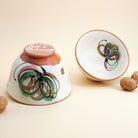 Mathilde, artiste intuitive, a créé pour ses mugs, tasses, assiettes et bols, huiliers et plats... un dessin "signature" floral, moderne, inspiré des céramiques traditionnelles provençales. Adriano livre des pièces au design épuré très contemporain, tournées à la main avec une précision quasi mathématique. Le décor d'émaillage par trempage laisse, lui, libre cours à l'aléatoire propre à la création de poterie artisanale.