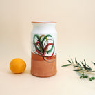 Mathilde, artiste intuitive, a créé pour ses mugs, tasses, assiettes et bols, huiliers et plats... un dessin "signature" floral, moderne, inspiré des céramiques traditionnelles provençales. Adriano livre des pièces au design épuré très contemporain, tournées à la main avec une précision quasi mathématique. Le décor d'émaillage par trempage laisse, lui, libre cours à l'aléatoire propre à la création de poterie artisanale.