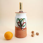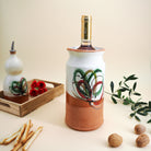 Quoiqu'il en soit, la brique à vin en céramique artisanale est une savante invention pour garder les bouteilles (de vin ou autre !) au frais. L'atelier varois de DMB Céramique en a fait un objet signature, décoré d'un motif floral traditionnel de la région. Alors, on trinque ?