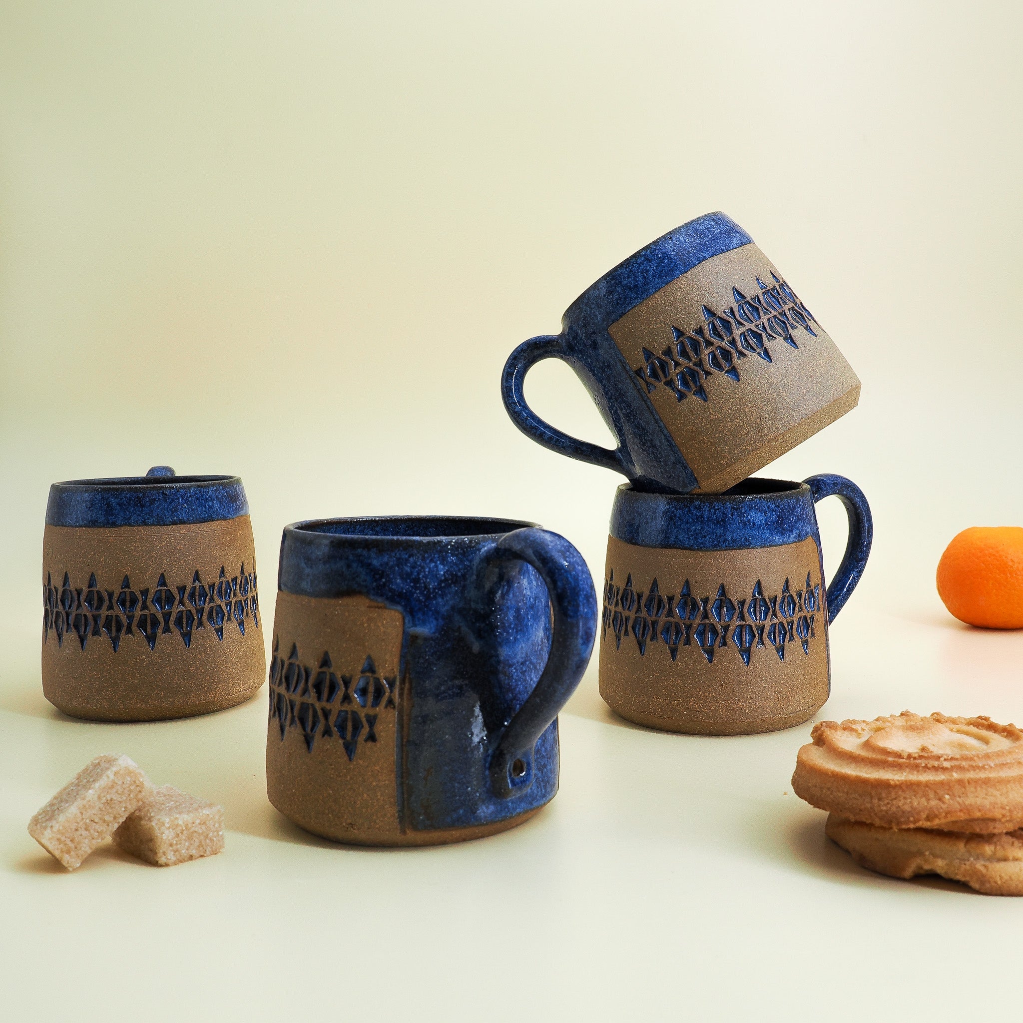 D’une incroyable modernité, les mugs en céramique Cascade de l’atelier Terranina rivalisent d’inventivité avec un décor minimaliste et pourtant très présent. L’émail bleu intense épouse les contours de ce mug et laisse apparaître ça et là en transparence, l’ocre de la terre rouge.