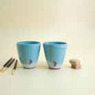 Extrêmement distinguées, les tasses à café de la gamme Nuage se font remarquées dès qu'elles arrivent sur le plateau ! Leur forme conique parfaitement régulière est habillée d'un duo d'émail bleu et blanc, souligné par un pied laissé en terre rouge, brute, qui rappelle l'art organique de la céramique artisanale.