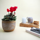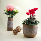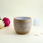 Habillez vos jolies fleurs d'un cache-pot élégant ! Emaillé à l'intérieur, le cache-pot de l'atelier Terranina est lisse et facile à rincer pour retirer les résidus de terre. L'extérieur, quant à lui, fait dialoguer les motifs d'inspiration ethniques finement soulignés par l'émail apposé en creux avec le grès, chamotté et finement rugueux, laissé brut et non émaillé, qui rappelle le côté organique de la céramique artisanale. Il n'en reste pas moins parfaitement étanche.