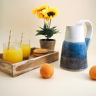 Ce pichet en céramique blanc, bleu et brun de 90 cl environ devient le centre d'intérêt de votre table grâce à sa prestance, entre tradition et modernité.