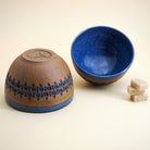 En témoigne, ce bol Cascade aux élégantes lignes arrondies, qui partage son décor entre un émail d’un bleu profond à l’intérieur et un extérieur laissé en terre brute, rappelant qu’il est né d’un bloc de grès massif et organique. Pourtant, le bol Cascade se révèle d’une légèreté surprenante.