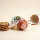 Ce mug en céramique artisanale a quelque chose de particulier : saurez-vous le remarquer ? Ce n'est pas son joli motif floral peint à la main. Ce n'est pas non plus sa forme haute et droite, qui offre un contenant généreux pour le thé ou le café.