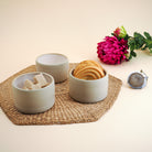 Le ramequin Brume affiche un minimaliste ultra tendance version céramique artisanale ! Sa forme, d'abord, à la fois ronde et droite en fait un petit contenant parfaitement stable, idéal pour le service de l'apéritif et les mains nombreuses qui vont venir y piocher des amuses-bouches.