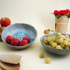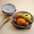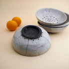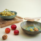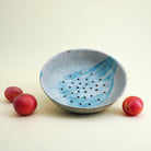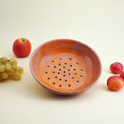 Fabriqués dans une terre chamotée - composée de minuscules éclats de terre cuite -, ces lave fruits sont très solides, idéalement pensés pour une utilisation quotidienne en cuisine. Si leur émail craquelé absorbe l'humidité, les pièces sèchent après chaque utilisation et retrouvent leur éclat initial.