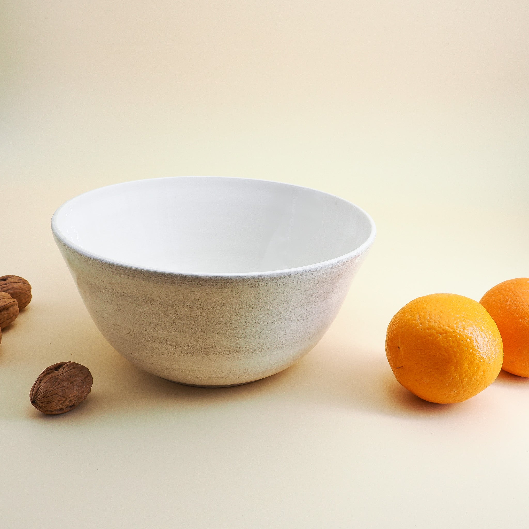 La potière de Marseille n'a pas troqué le pratique contre l'esthétique et a habillé ce grand saladier d'un duo coloré dedans-dehors. Il en devient ainsi une jolie pièce de vaisselle, qu'on a envie de garder hors des placards !