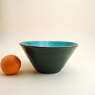 La forme de ce grand saladier droit en céramique est tout droit héritée de la vaisselle traditionnelle provençale. Celui qu'on appelle aussi "Tian" était à l'origine muni d'un bec verseur que l'artisane marseillaise de l'atelier du Chat Potier a choisi de supprimer pour créer un design très contemporain. Pari gagné : sa forme conique et son duo coloré intérieur-extérieur sont une vraie réussite !