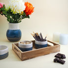 La gamme Océan et son bleu profond se déclinent sur une large collection de pièces de vaisselle et de décoration d'intérieur