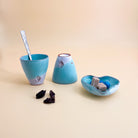 Tourné et émaillé à la main dans l'atelier varois de DMB Céramique, ce petit set à café affiche une élégance minimaliste. Le volume des tasses en format gobelet à café permet d'y servir aussi bien un expresso qu'un café plus allongé.