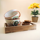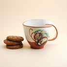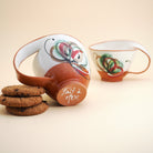 Mathilde, artiste intuitive, a créé pour ses mugs, tasses, assiettes et bols, huiliers et plats... un dessin "signature" floral, moderne, inspiré des céramiques traditionnelles provençales. Adriano livre des pièces au design épuré très contemporain, tournées à la main avec une précision quasi mathématique. Le décor d'émaillage par trempage laisse, lui, libre cours à l'aléatoire propre à la création de poterie artisanale.