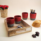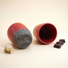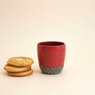 Redevenues à la mode, les tasses à café en format gobelet ont désormais le droit de citer sur la plateau du café ! Alors Terranina s’est saisi de cette forme traditionnelle de tasse sans anse pour y décliner son motif fétiche de lignes imbriquées. Alors qu’elle forme un bel ensemble avec le mug et la tasse Volute, cette tasse à café en céramique artisanale se fait particulièrement remarquée avec son émail rouge vif.