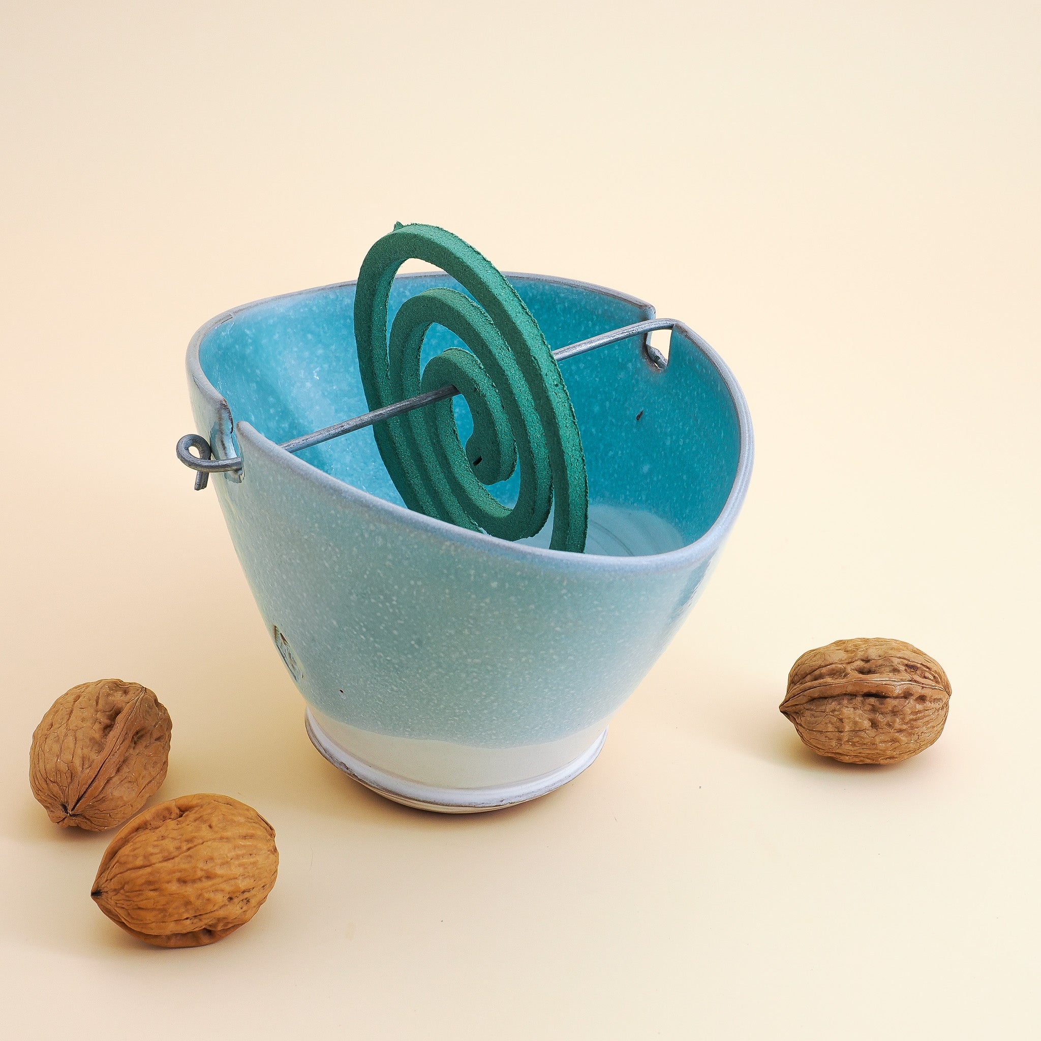 Avec sa forme et ses trois petits pieds, ce porte savon évoque les tabourets bas de yoga tandis que son émail craquelé est le fruit d'une cuisson raku, une technique ancestrale japonaise. Alors qu'il cuit à 960°, il est subitement sorti du four et le choc thermique occasionné fait tressaillir l'émail qui se craquelle de façon parfaitement aléatoire. Tous ces objets sont donc uniques. Ils nous invitent à lâcher prise et à accepter l'heureux accident du raku. Une excellente initiation à la philosophie zen... dès le matin dans la salle de bain !